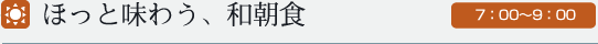 美味しい白ご飯に、卵料理や焼き魚など、定番の和朝食をご用意いたします。